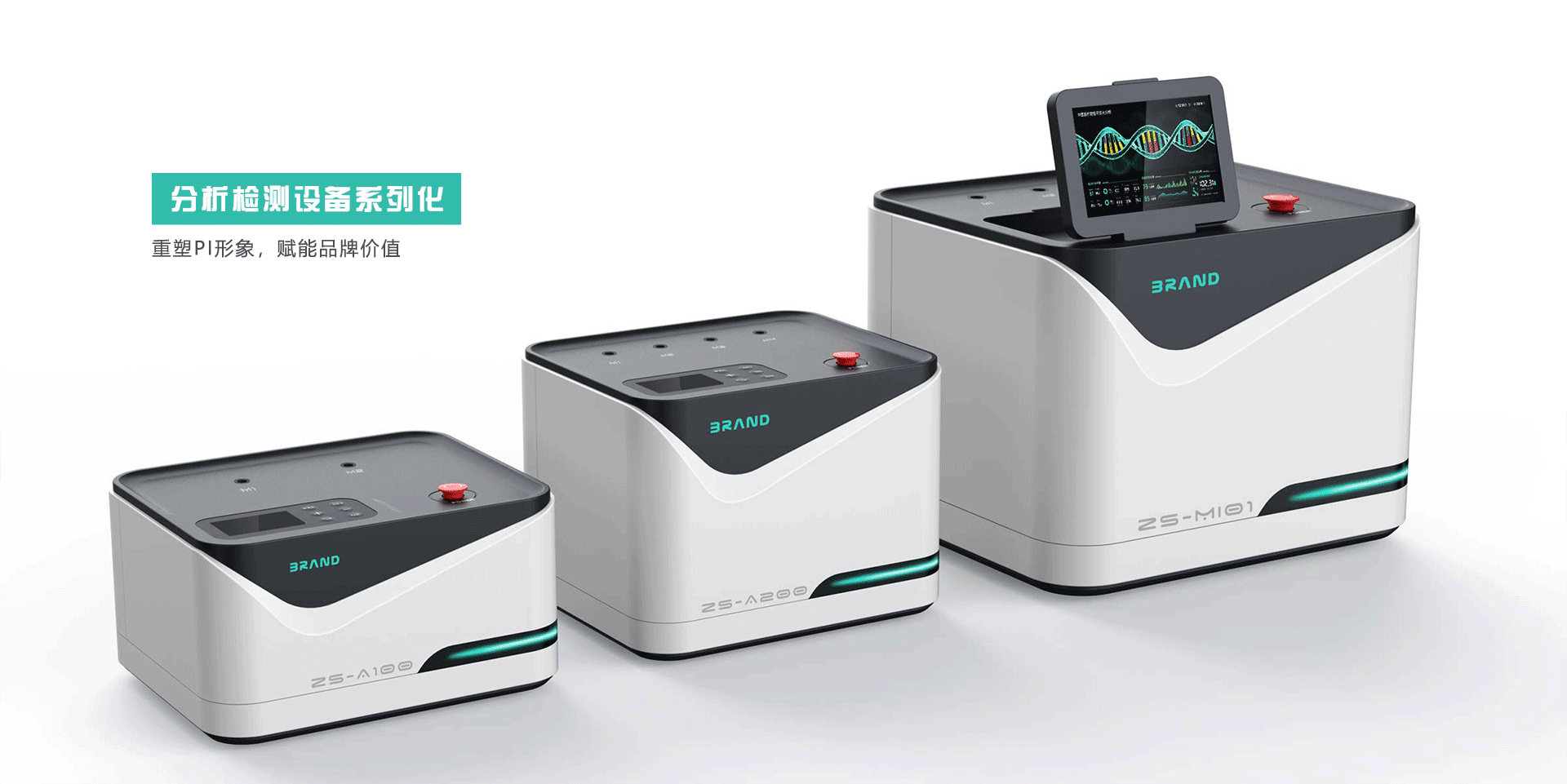 設(shè)計這套分析檢測設(shè)備時,我們從產(chǎn)品PI的角度出發(fā),進行設(shè)計研究,提取品牌元素進行推敲演化設(shè)計,通過產(chǎn)品面與面之間的關(guān)系,將提取的設(shè)計元素以流暢線條的形式貫穿產(chǎn)品,以常規(guī)工藝實現(xiàn)批量化的良品加工,達到從設(shè)計角度提升品牌形象的目的。