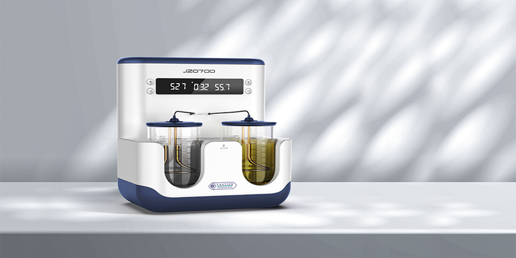 選擇白色和藍(lán)色為主色調(diào),使整個裝置看起來更加清新、干凈。機器上設(shè)有數(shù)字和刻度,方便用戶觀察和記錄實驗數(shù)據(jù),上面配備了一塊大型的數(shù)字顯示屏,可以清晰地顯示出實驗的各項參數(shù),如溫度、時間等。本產(chǎn)品設(shè)計思路結(jié)合了現(xiàn)代化的科技元素,如數(shù)字顯示、智能控制等,使得實驗操作更加便捷、安全和準(zhǔn)確。