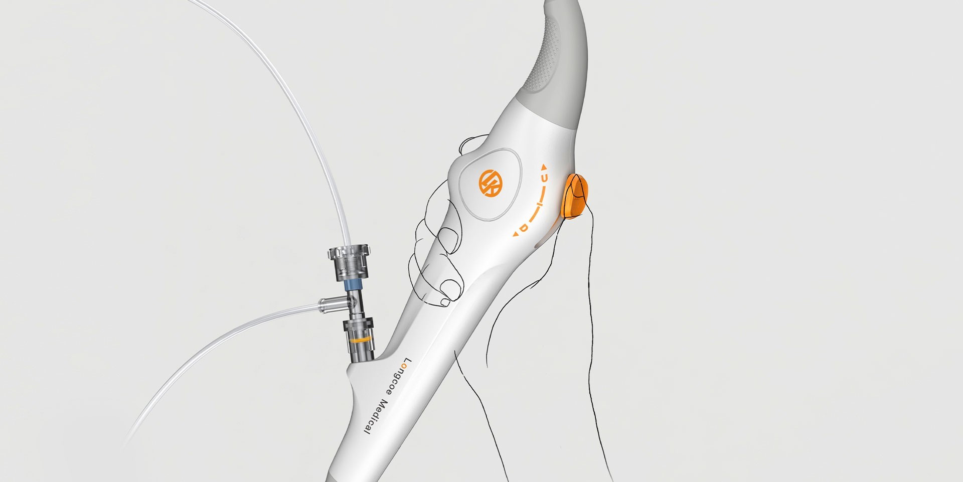 內(nèi)窺鏡設(shè)備由手持式內(nèi)窺鏡和顯示屏兩部分組成,手柄與圖像處理器協(xié)同工作;充分考慮人機(jī)工程學(xué),同時(shí)適用兩種握持方式,撥動(dòng)旋鈕可控制插入管狀態(tài),尾端可旋轉(zhuǎn),便于術(shù)者靈活切換手術(shù)操作姿勢(shì)。