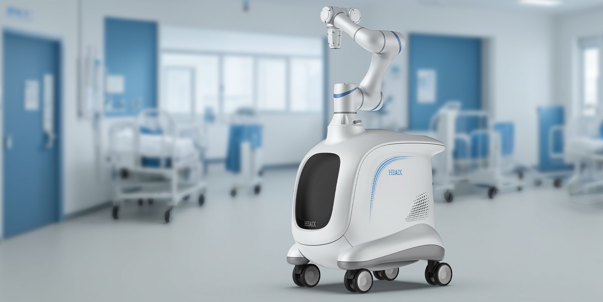 這款骨科手術(shù)機(jī)器人整體設(shè)計簡潔大方,線條流暢,彰顯科技感與專業(yè)感。機(jī)身主體采用純凈的白色,這一經(jīng)典的醫(yī)療色彩,不僅傳遞出潔凈、安全的理念,也與醫(yī)院的整體環(huán)境相適配,給患者帶來心理上的舒適與安心。在白色基調(diào)之上,點綴以藍(lán)色線條,藍(lán)色象征著冷靜與智慧,為機(jī)器人增添了一份靈動與科技氛圍。